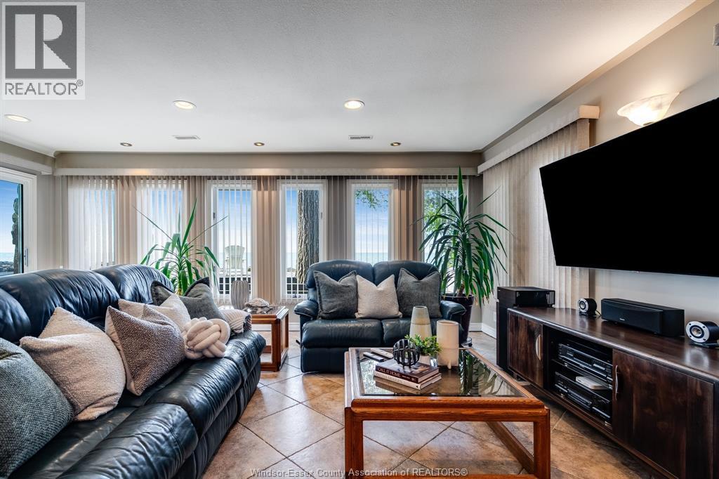 Waterfront living at its finest on Point Pelee Drive! This beautifully designed home showcases panoramic water views from the open-concept kitchen, dining, and living room, as well as from the main floor bedroom and the second-floor primary suite. The primary retreat features a spa-like 4-piece ensuite with a Bain Ultra air tub and a double-sided fireplace. Natural Gas radiant heated floors with multiple zones ensure year-round comfort, including in-floor radiant heating in the garage and also offers EV charging. Total reconstruction of mechanicals—including plumbing, electrical, and radiant in-floor heating—was completed in 2004, and all domestic plumbing is solid copper. For peace of mind, the property is protected by a concrete marine-anchored breakwall with additional armored stone protection. Major updates include siding, roof, and A/C within the last 5 years, plus an encapsulated crawlspace. Step out to your lakefront patio and take in breathtaking sunsets over the water. (id:4555)